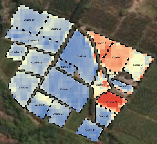 El análisis mostró una marcada heterogeneidad dentro de los cuadros, con zonas que recibían exceso de agua y otras con déficit, principalmente asociadas a la variabilidad de suelos.